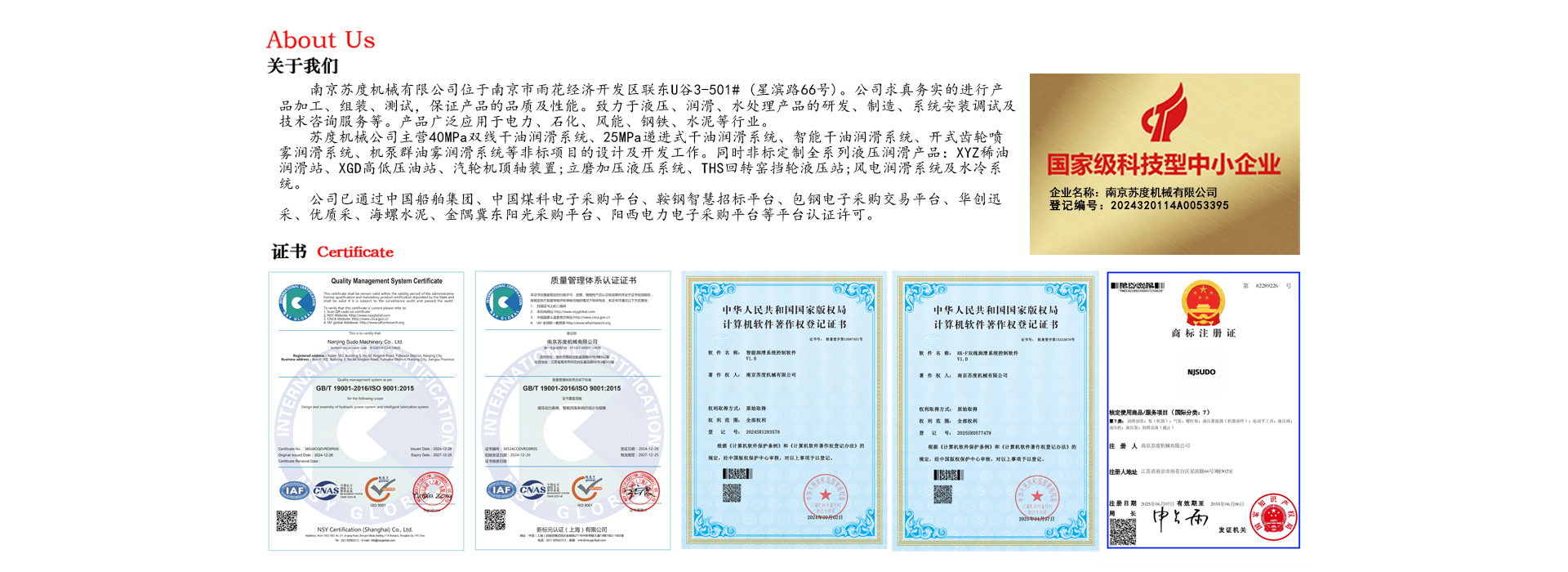 南京蘇度機(jī)械有限公司位于南京市雨花經(jīng)濟(jì)開發(fā)區(qū)聯(lián)東U谷3-502# (星濱路66號)。得益于南京以及長三角地區(qū)的潤滑產(chǎn)業(yè)集群優(yōu)勢資源,公司求真務(wù)實的進(jìn)行產(chǎn)品加工、組裝、測試,保證產(chǎn)品的品質(zhì)及性能。致力于液壓、潤滑、水處理產(chǎn)品的研發(fā)、制造、系統(tǒng)安裝調(diào)試及技術(shù)咨詢服務(wù)等。產(chǎn)品廣泛應(yīng)用于電力、石化、風(fēng)能、鋼鐵、水泥等行業(yè),長期與國內(nèi)大型的重機(jī)企業(yè)及設(shè)計院合作,潤滑系統(tǒng)隨主機(jī)設(shè)備出口至東南亞、...